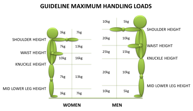 - If using trolleys or barrows, make sure their handle heights are between the shoulder and waist.